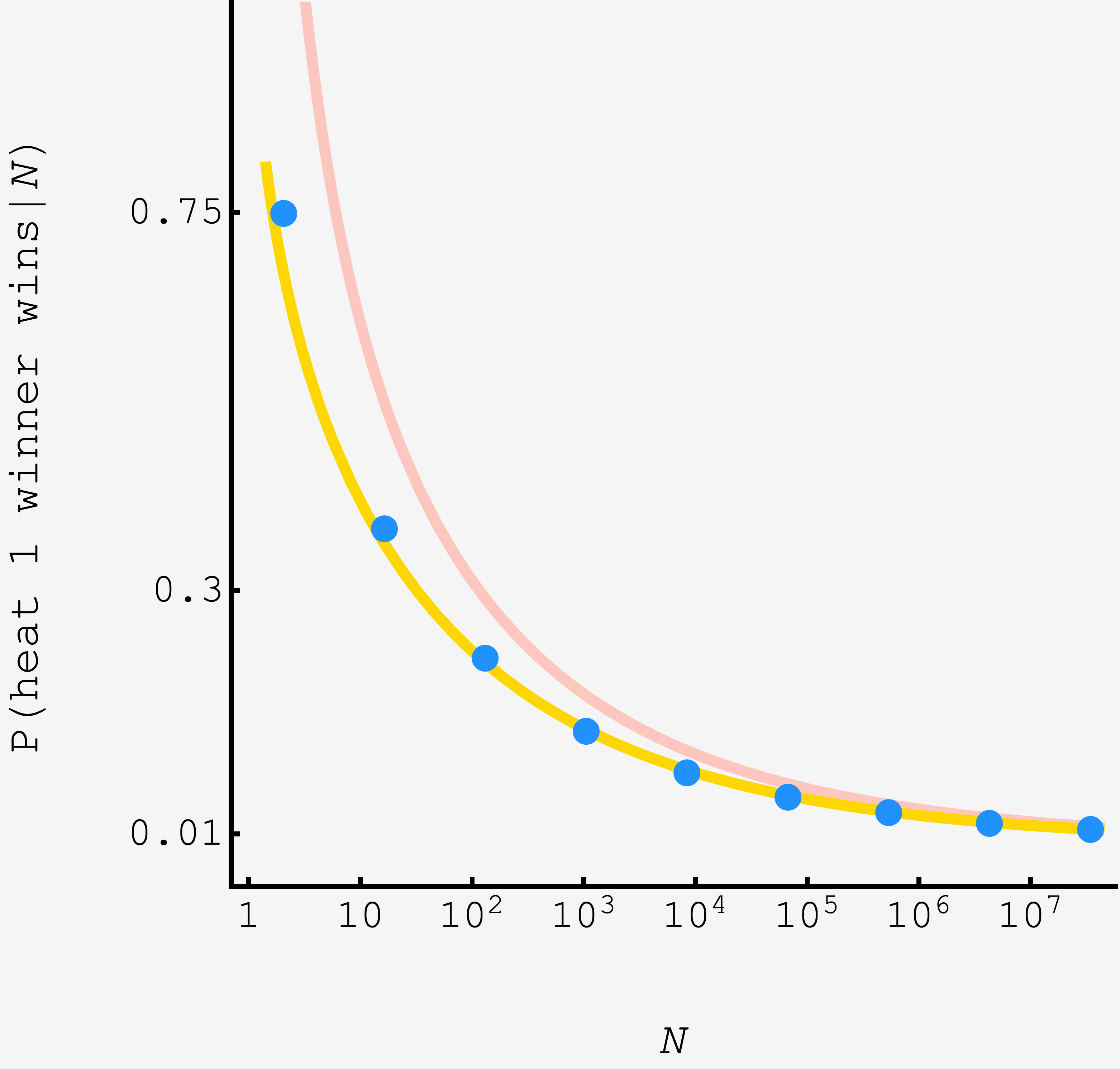 \[\begin{align} P(\text{heat 1 winner wins}) &\propto \gamma^{\nu^2-1}N^{-\nu^2} \\ & \propto (\log N)^{1-\sqrt{2}} N^{-(3-2\sqrt{2})}. \end{align}\]This integral is just the gamma function $\Gamma(1-\nu)$ making the final result